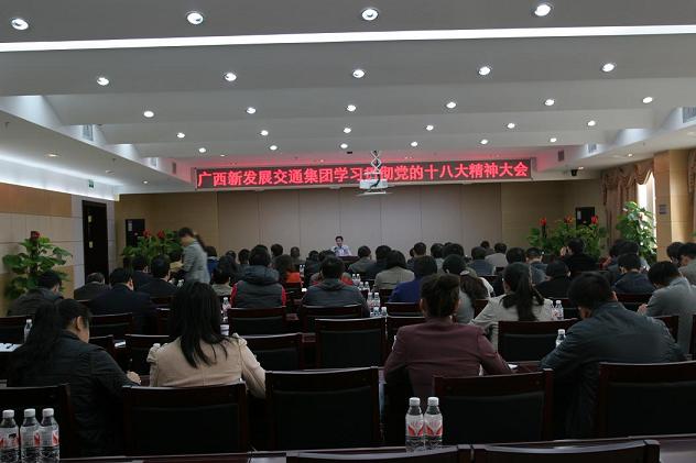為深入學(xué)習(xí)貫徹落實(shí)黨的十八大會(huì)議精神,在組織廣大黨員干部職工參加支部集中學(xué)習(xí)、科室集中學(xué)習(xí)、業(yè)余自學(xué)的基礎(chǔ)上,12月6日上午,廣西新發(fā)展交通集團(tuán)黨委在南寧召開了集中學(xué)習(xí)貫徹黨的十八大精神專題輔導(dǎo)大會(huì),集中聽取了中國社會(huì)科學(xué)院黨組成員、副院長兼當(dāng)代中國研究所所長、黨組書記李捷同志關(guān)于《深入學(xué)習(xí)貫徹十八大精神》的視頻專題輔導(dǎo)講座。集團(tuán)公司領(lǐng)導(dǎo)班子成員、集團(tuán)公司機(jī)關(guān)全體人員,直屬各單位領(lǐng)導(dǎo)班子成員、黨委辦公室負(fù)責(zé)人,廣西公路橋梁工程總公司各分(子)公司黨政一把手共80余人參加了會(huì)議。講座從黨的十八大主題、科學(xué)發(fā)展觀、中國特色社會(huì)主義道路、全面建成小康社會(huì)的新論斷及關(guān)于黨的建設(shè)要求的總體布局等五個(gè)方面進(jìn)行了深入解答,讓廣大黨員干部職工受益匪淺。