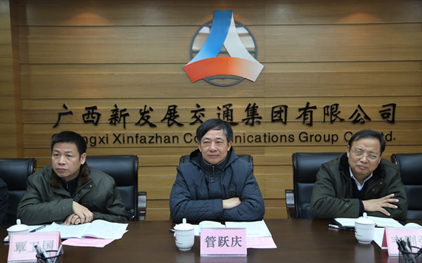 2月13日上午9時(shí),自治區(qū)國資委主任、黨委書記管躍慶一行到廣西新發(fā)展交通集團(tuán)開展調(diào)研座談,了解企業(yè)生產(chǎn)經(jīng)營情況及需要解決的困難和問題,并對(duì)集團(tuán)公司生產(chǎn)經(jīng)營及管理工作提出了指導(dǎo)性的意見和建議。