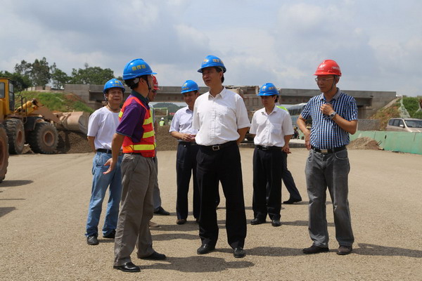 8月7日上午,自治區(qū)國(guó)資委主任、黨委書(shū)記管躍慶一行來(lái)到集團(tuán)公司承建的沿海高速改擴(kuò)建項(xiàng)目工地,在那馬北互通立交工地現(xiàn)場(chǎng),全面了解項(xiàng)目投資、業(yè)績(jī)考核完成情況和一期工程及后續(xù)改擴(kuò)建工程推進(jìn)情況,察看沿海高速改擴(kuò)建一期工程瀝青路面施工進(jìn)展。管躍慶要求,要認(rèn)真貫徹中央和自治區(qū)黨委、政府穩(wěn)增長(zhǎng)、促改革、調(diào)結(jié)構(gòu)、惠民生的決策部署,主動(dòng)作為,扎實(shí)抓好項(xiàng)目管理、建設(shè)質(zhì)量和安全生產(chǎn),為我區(qū)經(jīng)濟(jì)社會(huì)發(fā)展和實(shí)現(xiàn)“兩個(gè)建成”作出積極貢獻(xiàn)。集團(tuán)公司總經(jīng)理李定倫陪同調(diào)研。