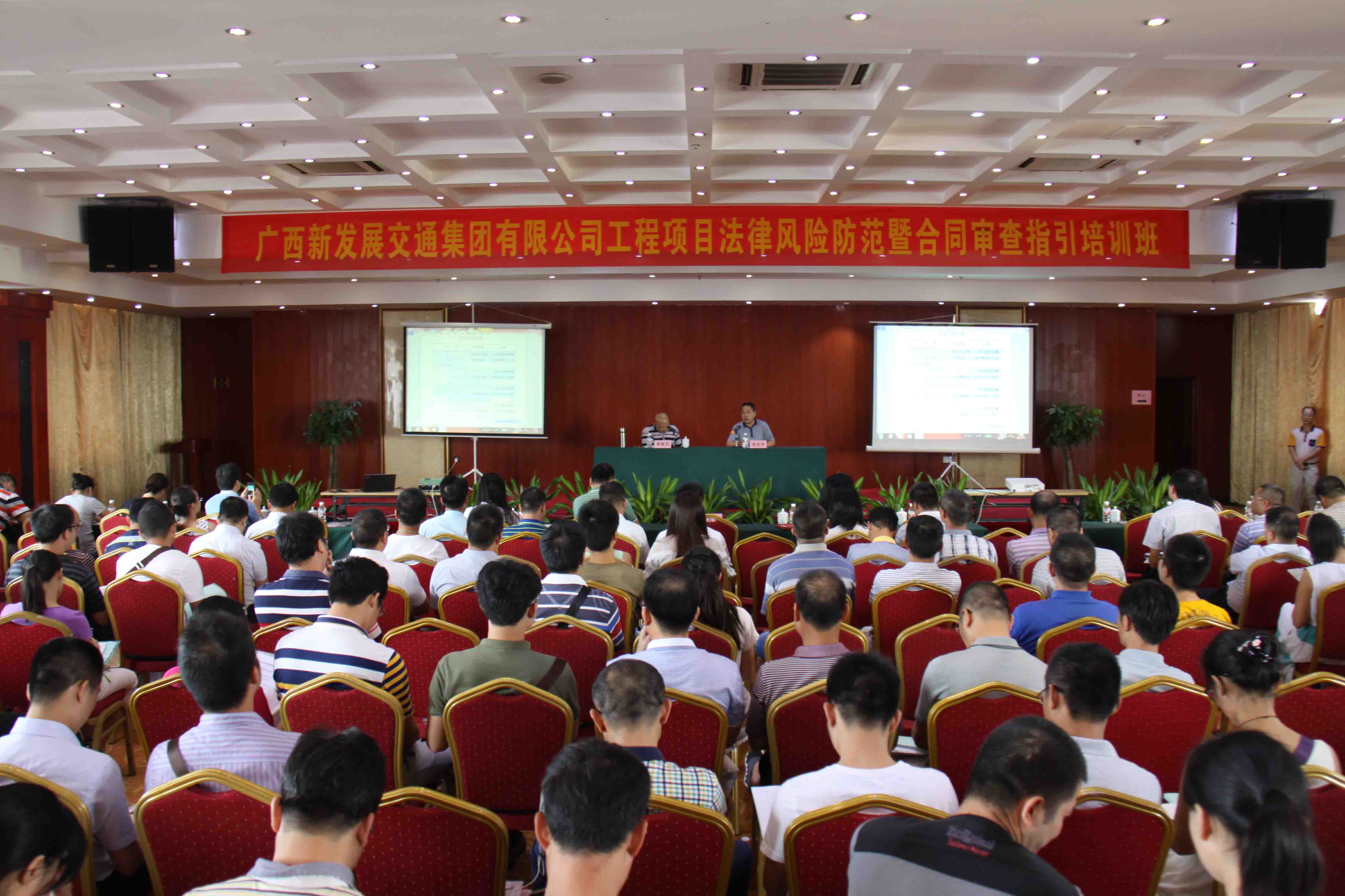本次培訓(xùn)班邀請了廣西同望律師事務(wù)所黃強光主任和林籽光律師分別就工程項目法律風(fēng)險防范及集團公司《合同審查指引》進(jìn)行專題講解。