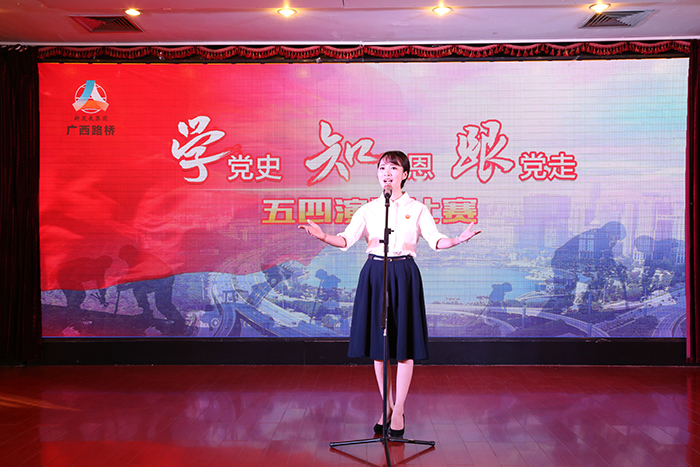 5月4日下午,路橋集團團委舉辦“學黨史、知黨恩、跟黨走”五四演講比賽,集團公司黨委副書記、工會主席張友坐,著名表演藝術家國家一級演員仇永力教授,廣西著名的主任播音員高路老師,公司黨委書記、董事長龐博新,黨委副書記、副董事長曹文海擔任比賽評委。路橋集團各直屬單位層層選拔推薦的17名優(yōu)秀選手參加比賽,他們圍繞崗位工作中涌現出來的愛崗敬業(yè),務實進取,無私奉獻的典型人物以及“品質路橋”創(chuàng)建過程中形成的典型經驗、做法,聲情并茂地講述了一段段感人的“路橋故事”。經過緊張而激烈的比賽,2名選手獲得一等獎,比賽決出二等獎3名、三等獎5名、優(yōu)秀獎7名。路橋集團各直屬單位領導及員工近200人觀看了比賽。?xml:namespace>