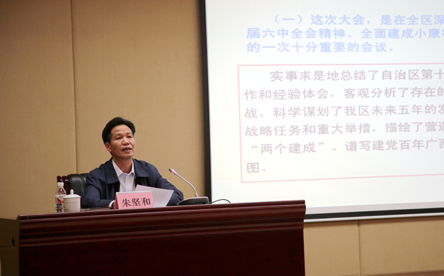 在講解到深刻領(lǐng)會、準(zhǔn)確把握黨代會精神時,朱堅和從七個方面講解了大會的重要精神和目標(biāo)任務(wù)。其中,著重講解了今后五年全區(qū)發(fā)展的總體要求和奮斗目標(biāo),即營造“三大生態(tài)”、實現(xiàn)“兩個建成”。