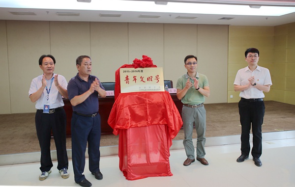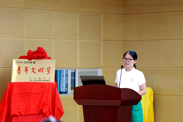 隨后,交通運輸廳團(tuán)委阮夏恒書記宣讀共青團(tuán)中央聯(lián)合其他21個部委下文的《關(guān)于命名2015—2016年度全國“青年文明號”的決定》。宣讀完畢后,團(tuán)區(qū)委青年發(fā)展部部長助理張弛、交通廳團(tuán)委書記阮夏恒、集團(tuán)公司黨委副書記張友坐、設(shè)計院公司黨委書記周錚共同為“青年文明號”揭牌。