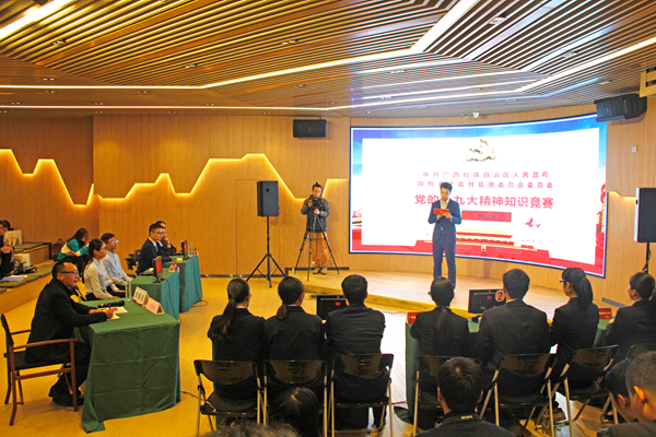 據(jù)悉,此次學(xué)習(xí)十九大精神知識(shí)競(jìng)賽共有31支隊(duì)伍參賽,初賽將決出6支優(yōu)勝隊(duì)伍參加于12月19日舉行的決賽,決賽全程在廣西電視臺(tái)錄制并擇機(jī)播放。目前,由翔路公司、設(shè)計(jì)院、一卡通等單位5名員工組成的集團(tuán)公司代表隊(duì)正在積極備戰(zhàn)決賽。