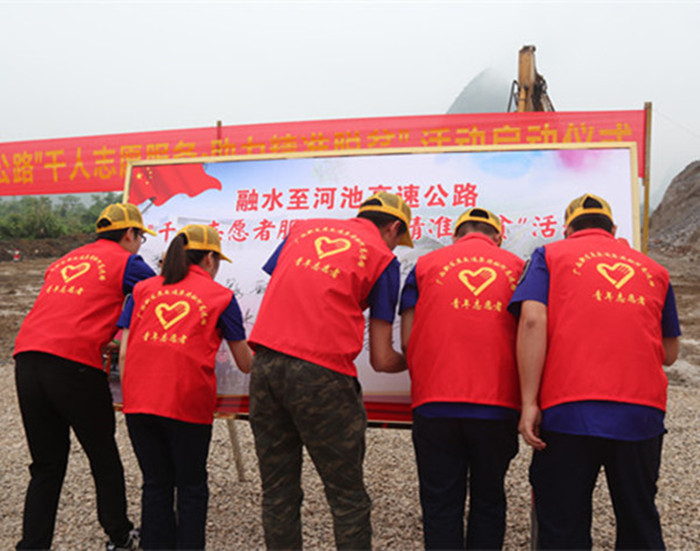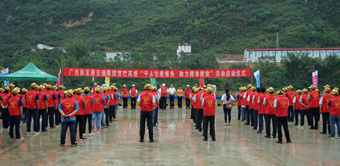 新恒通公司黨委書記、董事長賴水平介紹,集團(tuán)公司所建設(shè)的賀州至巴馬、融水至河池高速公路是廣西縣縣通高速公路重點工程,沿線大部分縣區(qū)仍屬貧窮縣。為響應(yīng)中央精準(zhǔn)扶貧和建設(shè)美麗中國的號召,擔(dān)負(fù)起國企的社會責(zé)任,新恒通公司組織全線參建單位成立青年志愿者服務(wù)隊,結(jié)合項目實際,從2018年1月至2020年12月在賀巴、融河等高速公路全線范圍內(nèi)開展為期三年的“千人志愿服務(wù),助力精準(zhǔn)脫貧”活動。