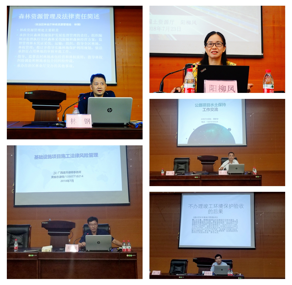 此次培訓(xùn)邀請(qǐng)了自治區(qū)國(guó)土資源廳規(guī)劃處副處長(zhǎng)陽(yáng)柳鳳、林業(yè)廳林政處副處長(zhǎng)林鋼、環(huán)境保護(hù)廳環(huán)評(píng)處處長(zhǎng)李亮光、水利廳水土保持處副處長(zhǎng)黃家安以及廣西建開(kāi)律師事務(wù)所主任黃振忠律師5位專(zhuān)家圍繞項(xiàng)目建設(shè)過(guò)程中的國(guó)土、林地、環(huán)境保護(hù)、水土保持以及項(xiàng)目經(jīng)營(yíng)常見(jiàn)法律政策問(wèn)題進(jìn)行專(zhuān)題授課。此次培訓(xùn)緊貼建設(shè)項(xiàng)目管理的實(shí)際需求,內(nèi)容豐富,針對(duì)性強(qiáng)。通過(guò)培訓(xùn),提高了廣大建設(shè)項(xiàng)目管理人員的法律政策水平,增強(qiáng)了處理具體法律問(wèn)題的能力,對(duì)今后依法依規(guī)建設(shè)項(xiàng)目起到很好的促進(jìn)作用。