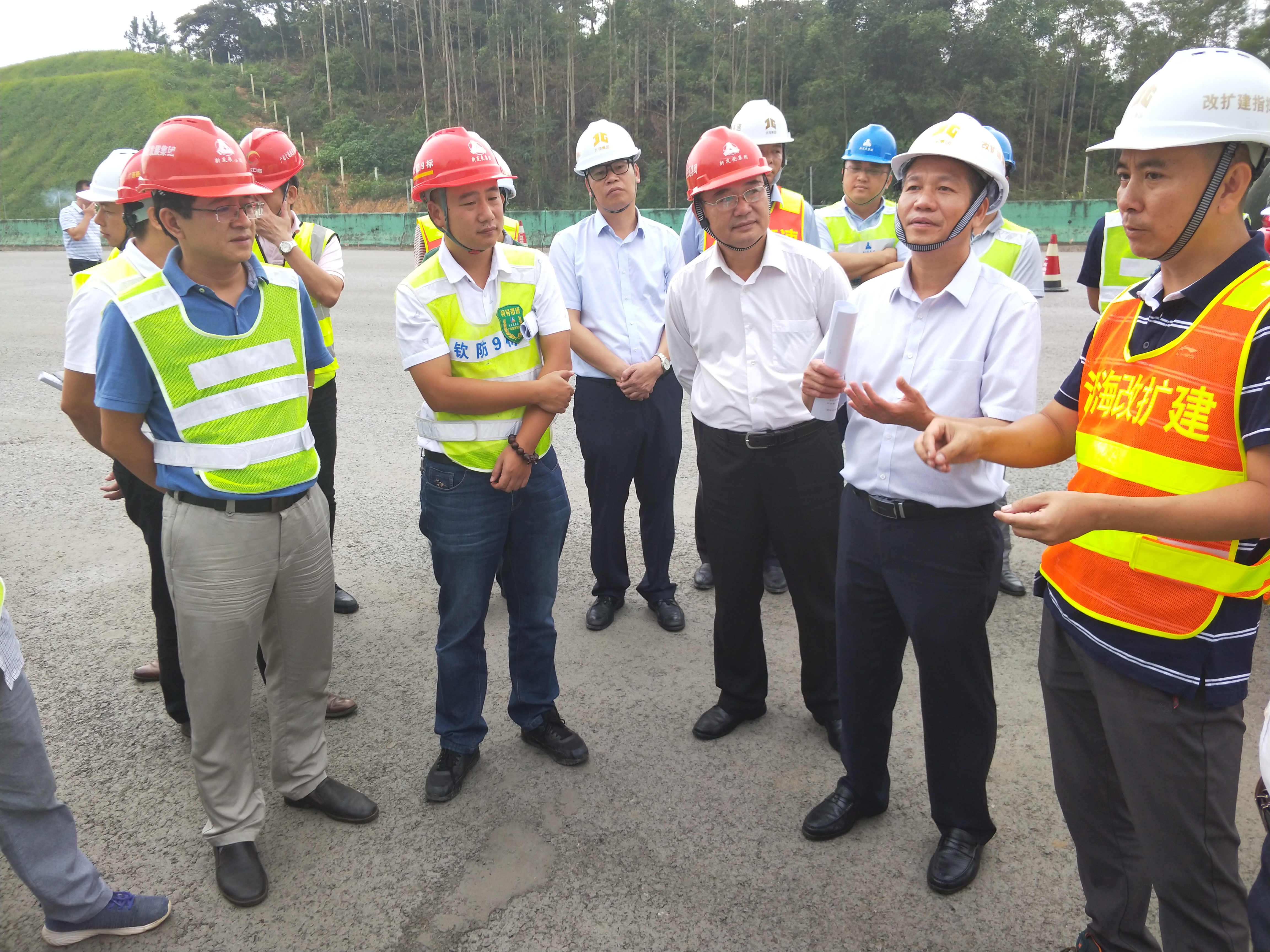 朱堅和(中)一行在南欽防改擴建№8標調研南欽防改擴№9標調研活動現場