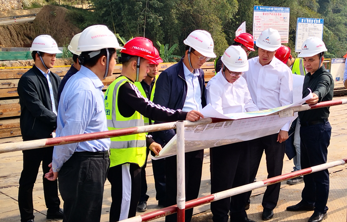 李定倫一行到紅水河特大橋一線施工現(xiàn)場與建設(shè)人員深入溝通交流,詳細了解項目進展情況,聽取當前項目建設(shè)存在的重點難點,對項目建設(shè)的總體規(guī)劃和方案提出意見,并要求指揮部和各參建單位齊心協(xié)力、科學謀劃布局,認真研究可行性方案,落實建設(shè)責任,嚴把質(zhì)量安全關(guān),確保紅水河特大橋項目建設(shè)高效、扎實、快速推進。