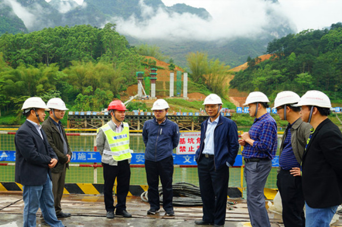 會后,李定倫率隊到都巴路控制性工程紅水河特大橋施工現(xiàn)場督導安全生產工作。