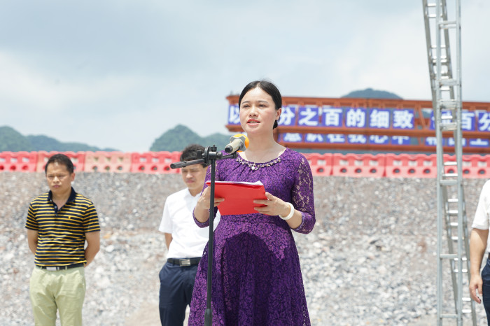 河池市委常委、市人民政府常務(wù)副市長韋朝暉在會上發(fā)言。她表示,當?shù)卣畬拇缶殖霭l(fā),動員全線力量,牢固樹立服務(wù)意識,明確責任、切實履行職責,積極配合協(xié)調(diào)解決建設(shè)過程中遇到的困難,做好沿線群眾的思想工作,扎實完成各項工作任務(wù),為高速公路建設(shè)營造良好、寬松的環(huán)境,爭取來都高速早日建成通車,為打贏脫貧攻堅戰(zhàn)、造福沿線百姓作出貢獻。此后,沿線各縣政府代表分別作了表態(tài)發(fā)言。